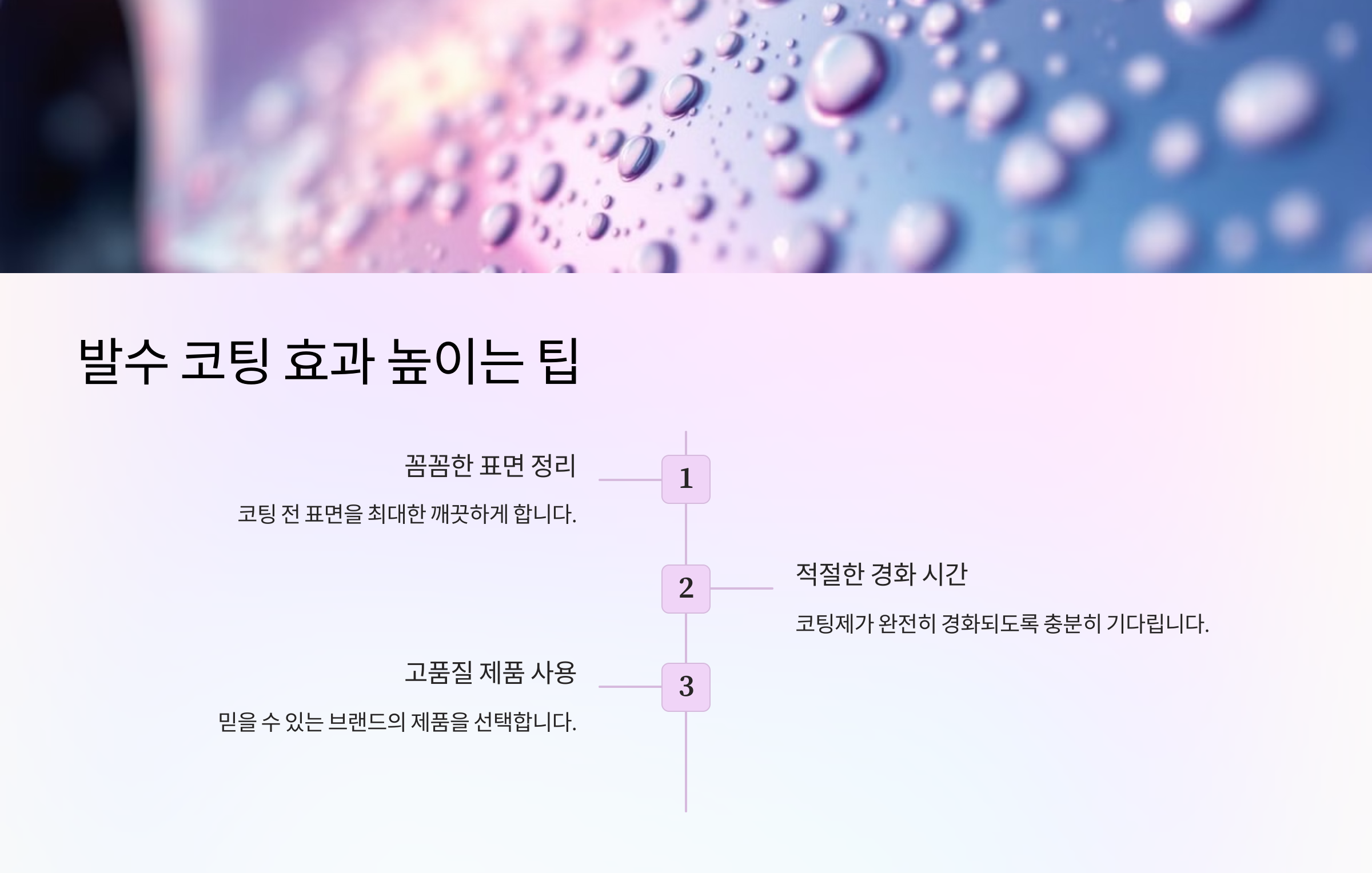 💡 Tip: 코팅 후 24시간 동안 물이 닿지 않도록 하면 더욱 강력한 효과를 볼 수 있어요! 😉